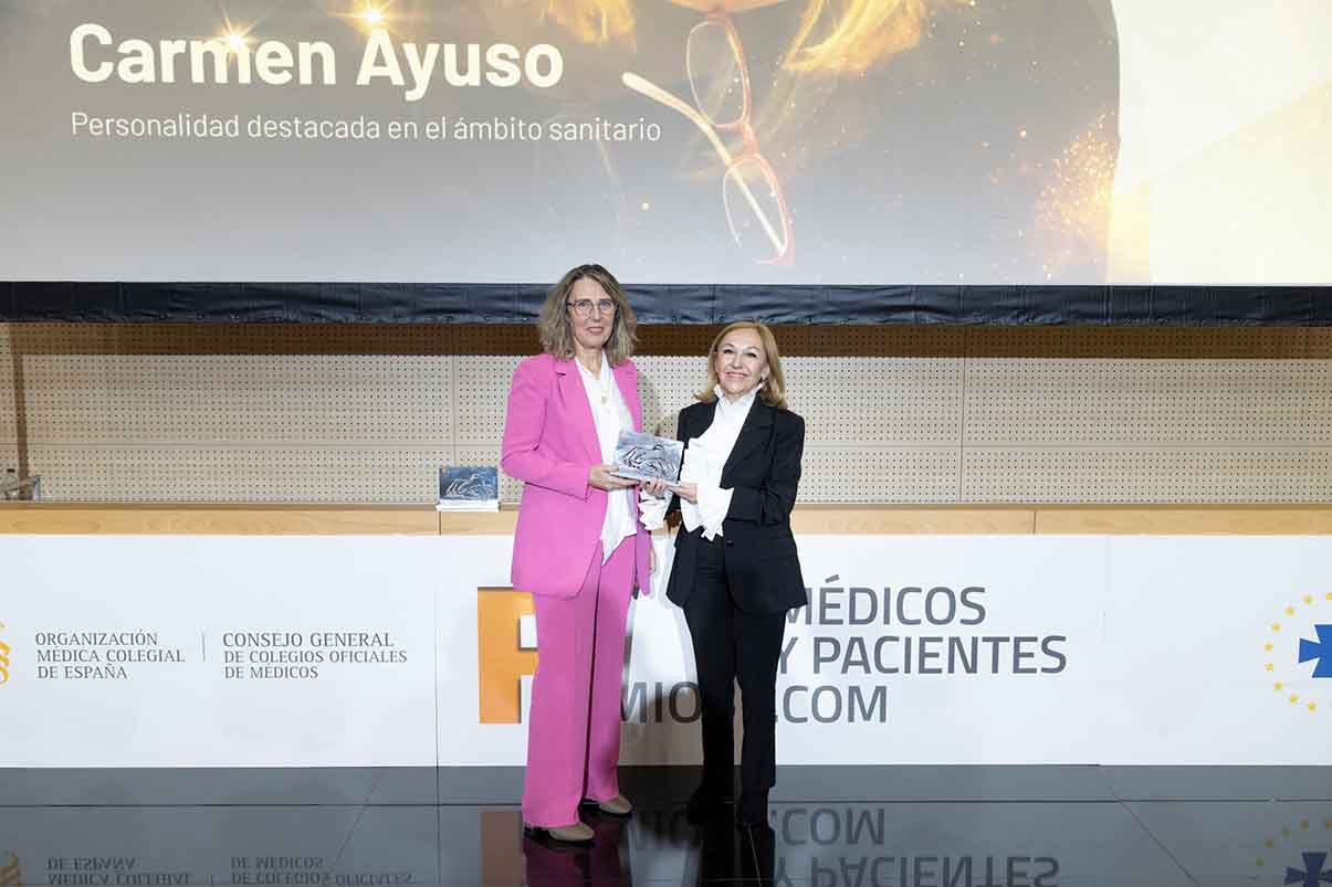 La Doctora Carmen Ayuso, directora científica del Instituto de Investigación Sanitaria de la Fundación Jiménez Díaz (IIS-FJD) y jefa del Departamento de Genética del hospital madrileño y de los otros tres Hospitales de Quirónsalud integrados en el Sermas -los hospitales universitarios Rey Juan Carlos (Móstoles), Infanta Elena (Valdemoro) y General de Villalba (Collado Villalba)-, recibió el pasado jueves el “Premio Médicos y Pacientes” en la categoría de “Personalidad destacada en el ámbito sanitario”, en la VII edición de estos galardones entregados por la Organización Médica Colegial (OMC) de España.